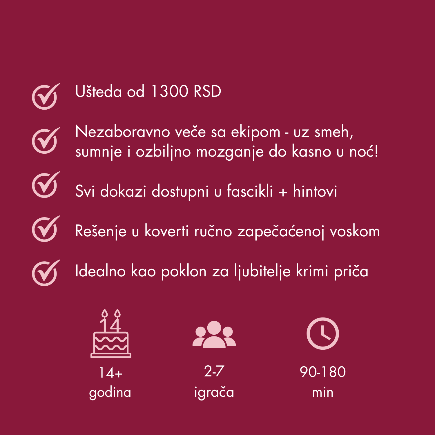 - Ubistvo u Vili Edinbraj - raskošna vila, večera koja pođe po zlu i mnogo skrivenih motiva.